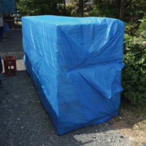 その上から厚手のブルーシートですっぽりと覆います。