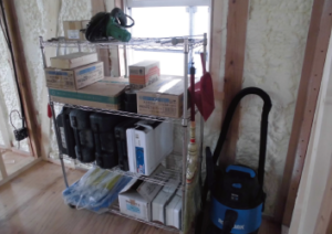 私たちは専用のラックを用意し、部材や工具を種類ごとに整頓。