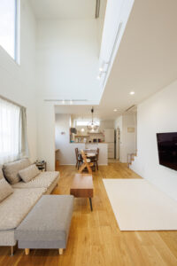 高い位置にある窓(高窓)から光を取り込むことで、LDKがぐっと明るくなります。