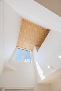 その場合、2階リビングにして「勾配天井(屋根の形に合わせた斜めの天井)」にすることで