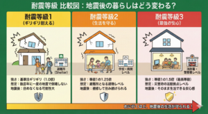 - 注意点:「倒壊しない」=「住み続けられる」ではありません。命を守るための最低ラインであり